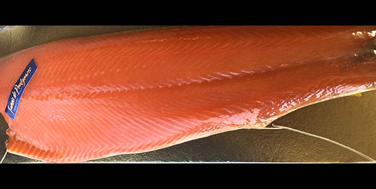 Saumon Fumé : Fumoir de Poulgoazec, Plouhinec. Saumon BIO, en provenance de petites fermes aquacoles Irlandaises.